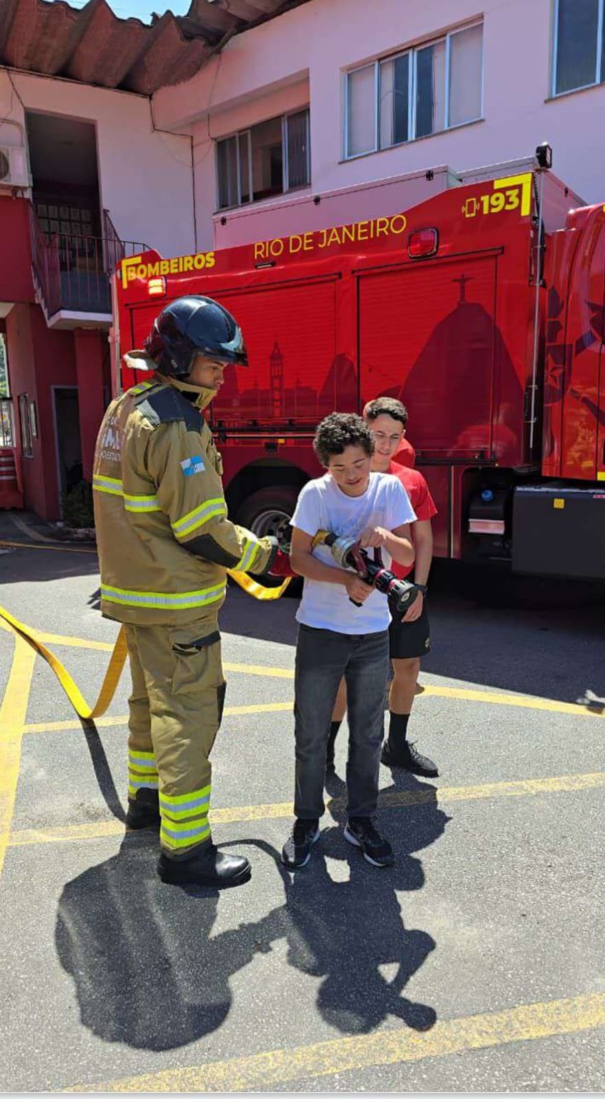 Como parte do apoio institucional, o CBMERJ participou da programação com palestras sobre o exercício da profissão de bombeiro militar, no auditório do 10º GBM, além de promover instruções de combate a incêndio, nas quais as crianças participaram ativamente ao lado dos bombeiros. Durante a atividade, muitas delas vestiram a farda da Corporação, vivenciando de forma lúdica e educativa o dia a dia da profissão.