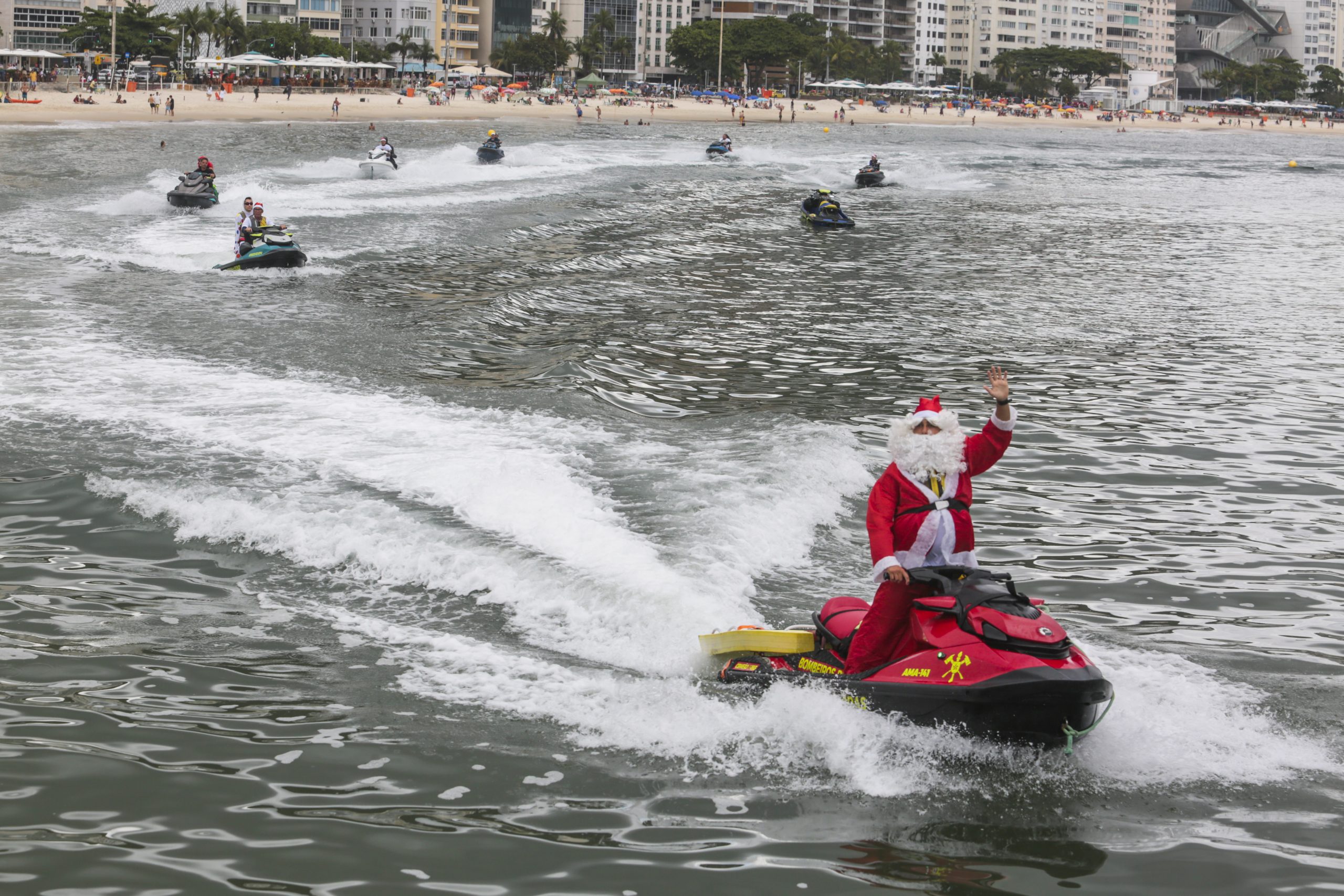 O Natal chegou mais cedo na Praia de Copacabana, na Zona Sul do Rio. Nesta quinta-feira (04/12), o Corpo de Bombeiros Militar do Estado do Rio de Janeiro (CBMERJ) promoveu um dia de celebração, carinho e inclusão para crianças e jovens com câncer e deficiência, no 3º Grupamento Marítimo (3º GMar). A ação, que já se tornou uma das tradições mais aguardadas do calendário da corporação, contou com a chegada triunfal do Papai Noel pilotando uma moto aquática. Recebido com aplausos e muita animação, o Bom Velhinho distribuiu presentes e mensagens de esperança, em um cenário que emocionou familiares e voluntários.