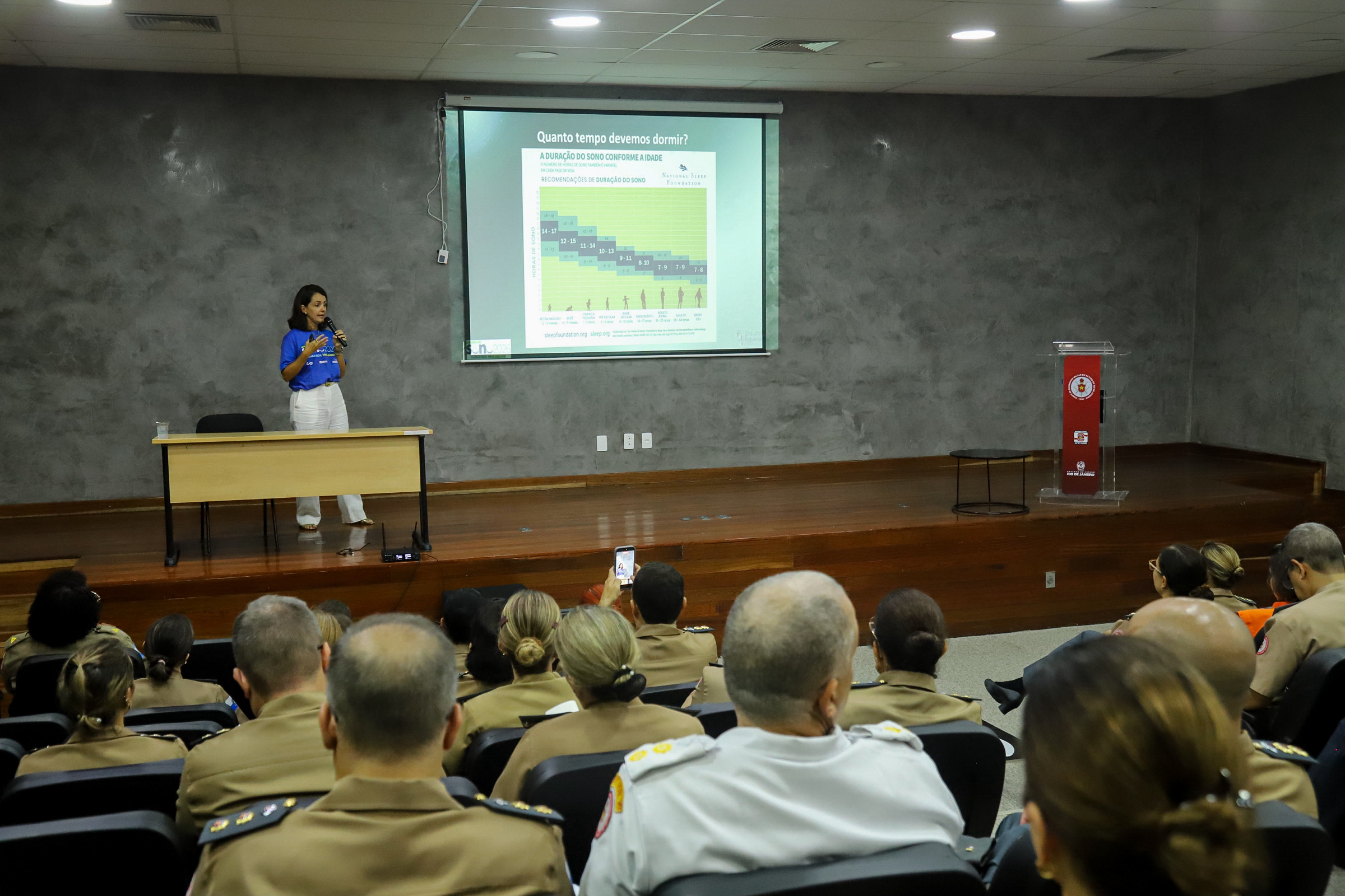 O encontro foi realizado na segunda feira (16.03), no auditório do Estado-Maior Geral. A abertura foi conduzida pela Diretora da DGO, a Coronel BM Sandra Cristina, que deu as boas vindas a todos os participantes. Logo em seguida, foi a vez da Dra Janini Figueiredo, médica especialista em Medicina do Sono e integrante da Liga Carioca do Sono. Ela abordou diversos temas relevantes e como exemplo podemos citar: Os prejuízos causados ao organismo, em decorrência dos distúrbios do sono.